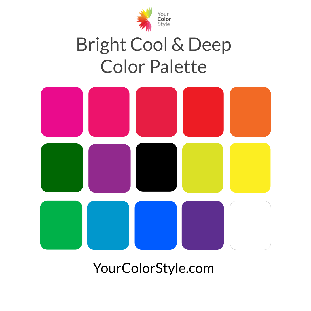 Bright Cool & Deep is bold, vivid, and dramatic — perfect for women who shine in jewel tones, hot pink, and crisp white.