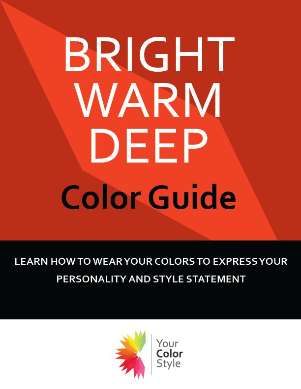 You are bright warm deep if you wear bright clear chroma colors best. Dusty muted tones and pastels will drain you. You have very dark hair, or very dark eyes or skin. Only one value needs to be true to be deep in depth. You have warm undertones. Your dominant feature is likely deep (depth). You look great in bright tomato red and deep earthy tones.Edit Your Wardrobe