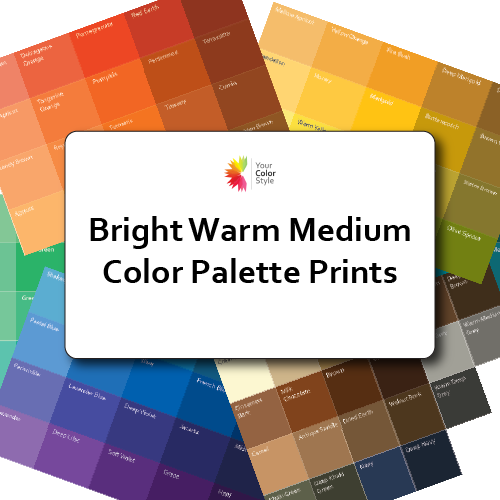You are bright warm medium if you wear bright clear chroma colors best. Dusty muted tones will drain you. You have medium dark hair, or medium dark eyes or skin. Only one value needs to be true to be medium in depth. You have warm undertones. Your dominant feature is likely warm (temperature). You look great in bright tomato red and olive green.You'll see a mini color palette for bright warm and medium below.