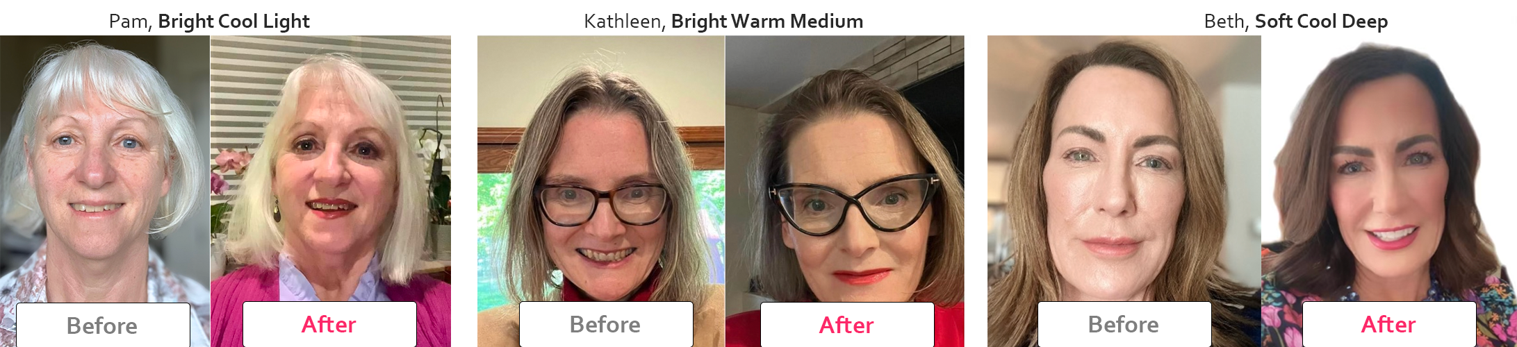 Each month, we dive deep into a new color theme. From live calls where Jen Vax shares expert color theory to personalized virtual draping, you’ll discover your best shades, learn how to mix and match colors, and find your perfect outfit combinations. Gail Scott shares style inspiration and makeup tips tailored to your unique palette.